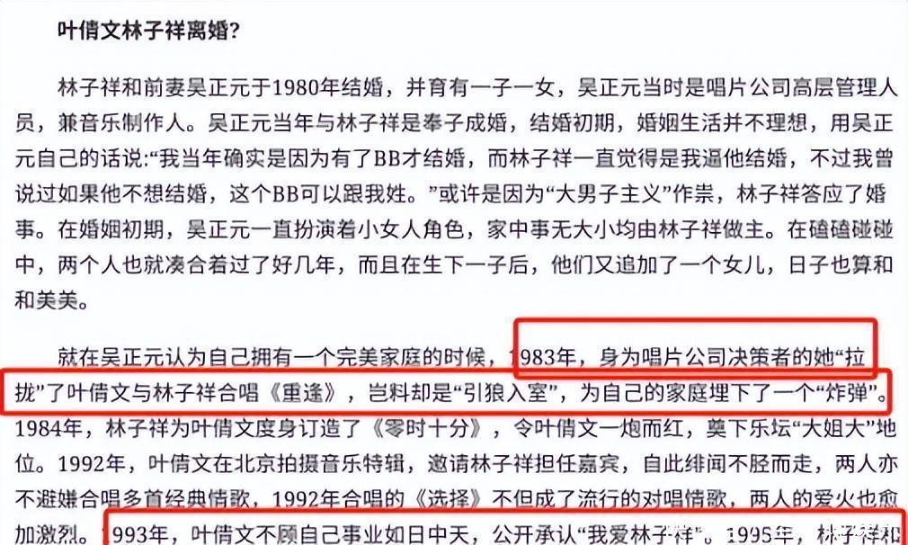 这段感情也是走到了终点,而费翔更是至今未婚,在父母姐姐相继离世后,依旧孤单一人。而她的第二段感情就更加饱受争议了,哪怕现在这“三姐”的头衔还摘下来呢。众所周知,叶大姐现在跟老林是一对,当初她刚到香港,还是老林的第一任妻子吴正元帮她牵线,结果“引狼入室”。